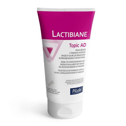 Lactibiane Topic AD to balsam zmiękczający skórę suchą z tendencją do atopii. Koi oraz łagodzi uczucie swędzenia. Zalecany do stosowania już od 1 dnia życia. Balsam probiotyczny powstał na bazie aktywnych składników zapewniających kompleksowe działanie dla skóry atopowej: Lizat fermentacyjny Lactobacillus zwiększa różnorodność komensalnej mikroflory skóry i utrzymuje równowagę mikrobiotyczną skóry. Prebiotyk α-gluko-oligosacharydowy chroni mikrobiotę skóry. LPC i witamina B3 pomagają wzmocnić barierę skórną. Laboratoire PiLeJe opracowało pierwszy balsam zmiękczający z linii Microbiota, aby zaspokoić potrzeby skóry ze skłonnością do atopii. Lactibiane Topic AD jest odpowiedni dla niemowląt, dzieci i dorosłych.