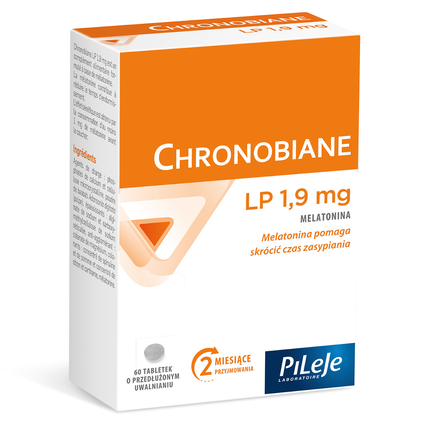 Chronobiane LP 1,9 mg to suplement diety w formie tabletek o przedłużonym uwalnianiu na bazie melatoniny. Melatonina pomaga skrócić czas zasypiania. Przeciwwskazania: może być podawany tylko dzieciom i młodzieży na podstawie porady lekarskiej. Niezalecany dla kobiet w ciąży i / lub karmiących piersią. W połączeniu z leczeniem farmakologicznym należy zasięgnąć porady lekarza lub farmaceuty.